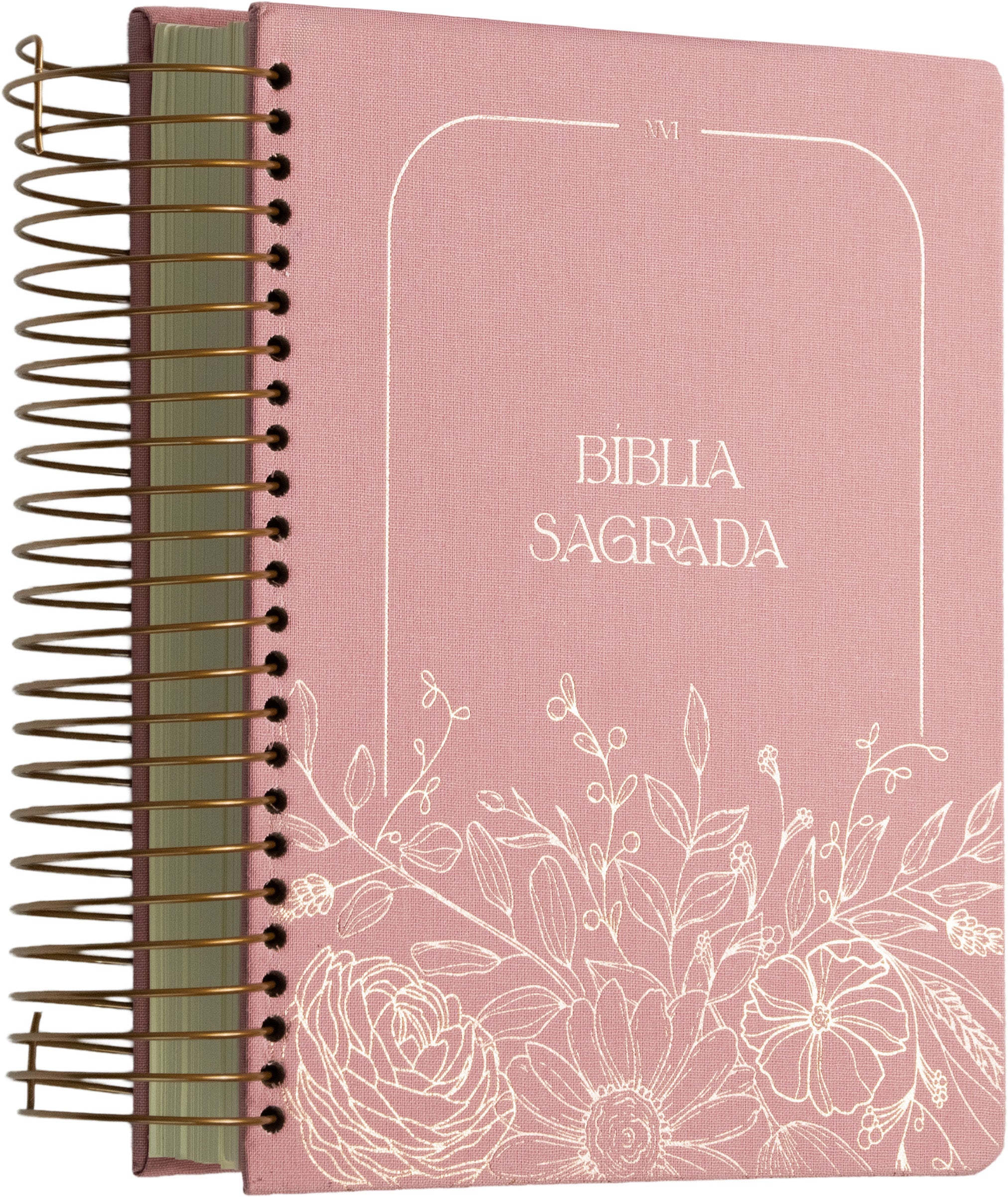 Bíblia NVI com Espaço para Anotações central, Capa dura rosa floral, Espiral, Leitura Perfeita